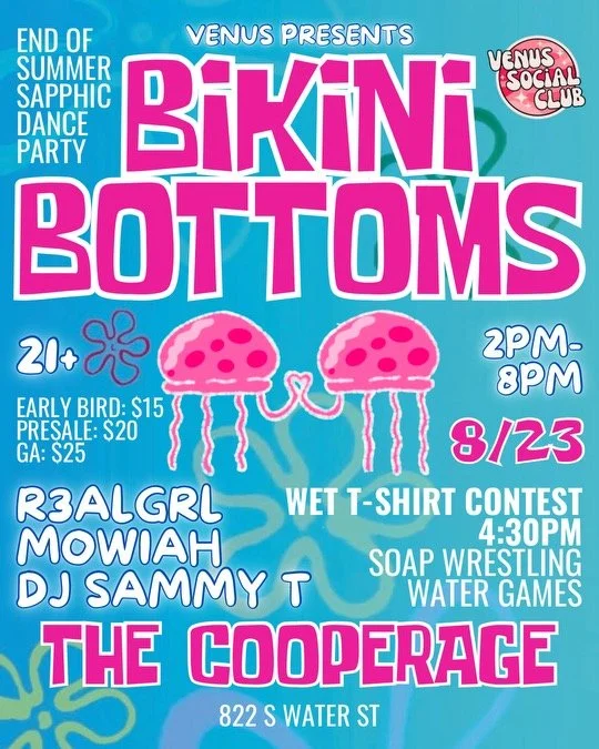 Join Venus Social Club at The Cooperage for our end of summer sapphic dance party, BIKINI BOTTOMS!
